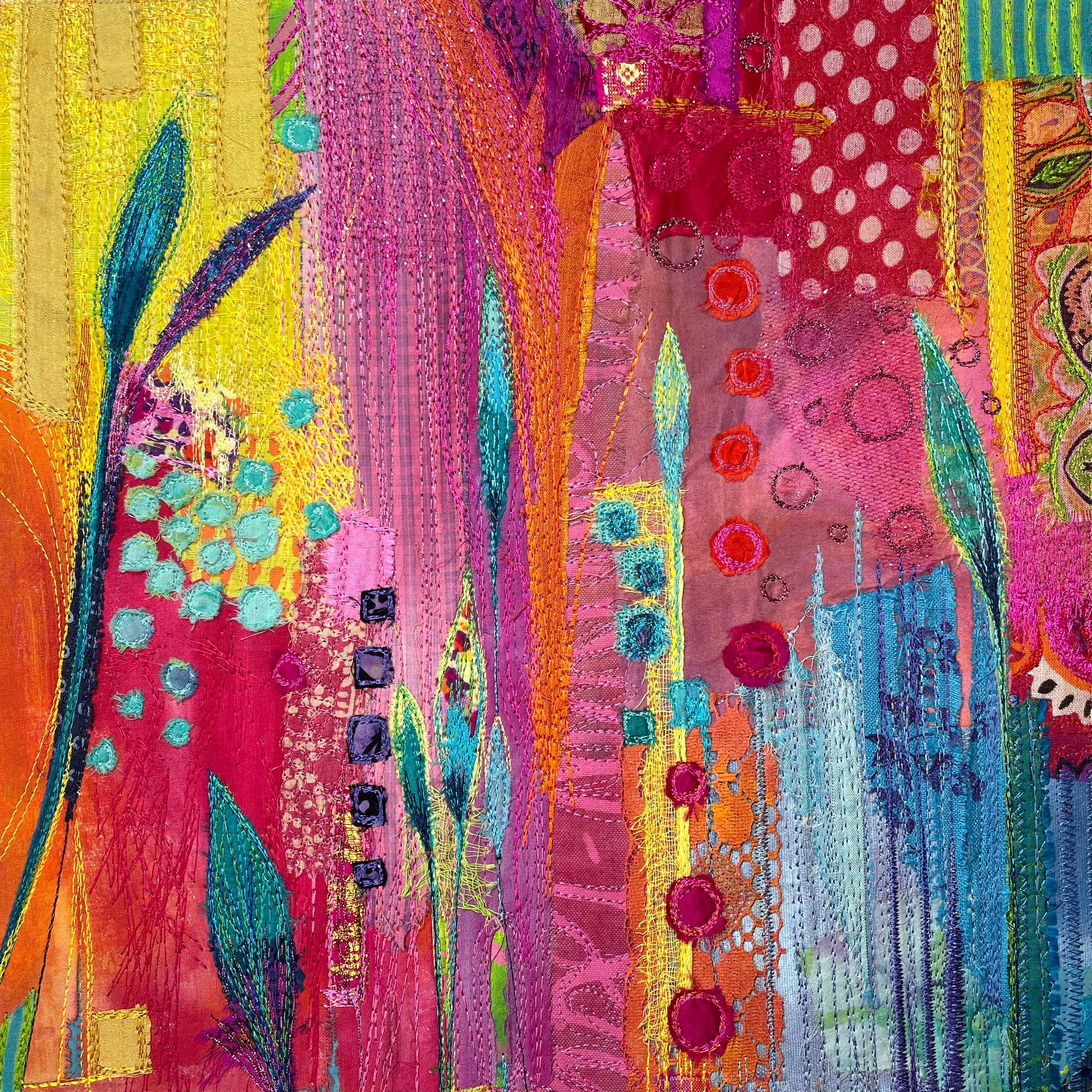 The lady in question came along to the talk, then appeared in class four days later with a pretty dire but direct copy of one of the pieces. Same design (well, an attempt at) and even in the same colours, but with none of the detail or finesse - so she hadn’t even attempted any of the embroidery techniques, which would’ve at least made it a useful exercise! More importantly, the fact she had a fancy-pants machine made ZERO difference to the outcome. It was embarrassing.