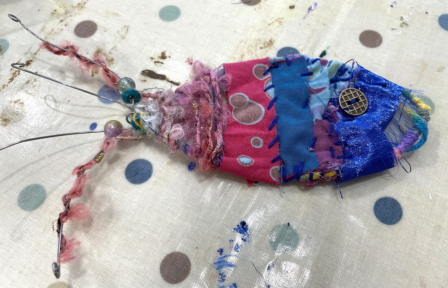 Our workshops were all sold out and crammed again, which was fun and probably the best bit of the weekend. My lot made little fishies or leaves, and as expected, took them home to finish - although one lady, very nervous to start, ‘don’t know what I’m doing’ actually did finish hers (see below). So there you go. Don’t know until you try!