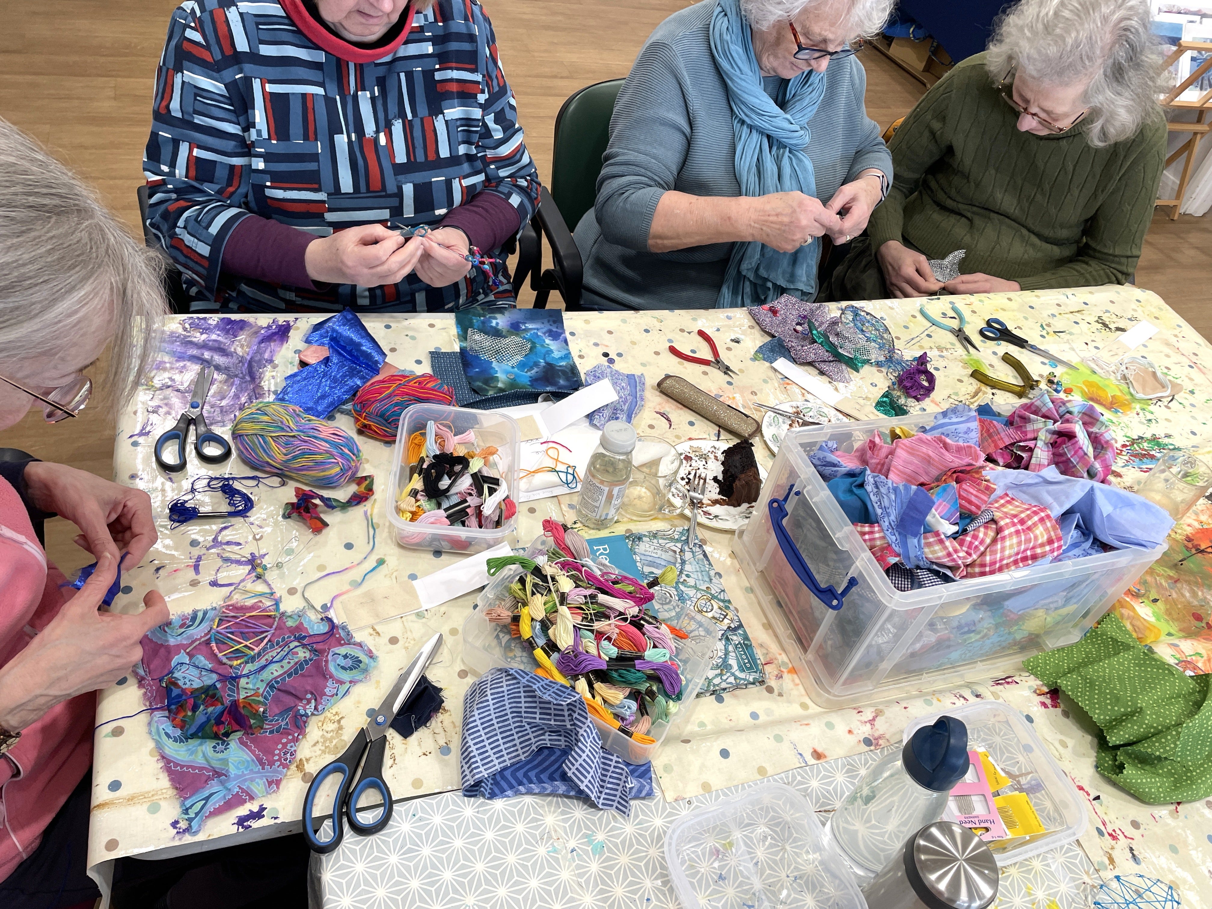 Switching our ‘private view’ to a hands-on ‘stitch’n’sip’ session was a genius move: we had more people through the door, and the lovely buzz of activity and gentle stitching all evening was a perfect way to kick off the weekend.