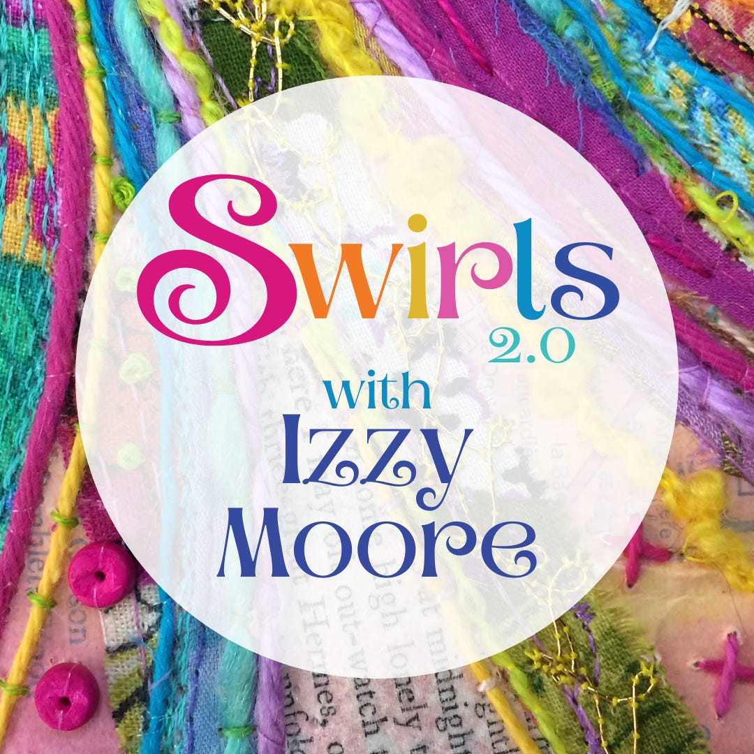 My big SWIRLS mixed-media machine embroidery course is open very soon (next week for enrolments, to start on 19 January). The waitlist is open NOW and the only way to get yourself a 20% discount (not available after I open the doors, midweek).