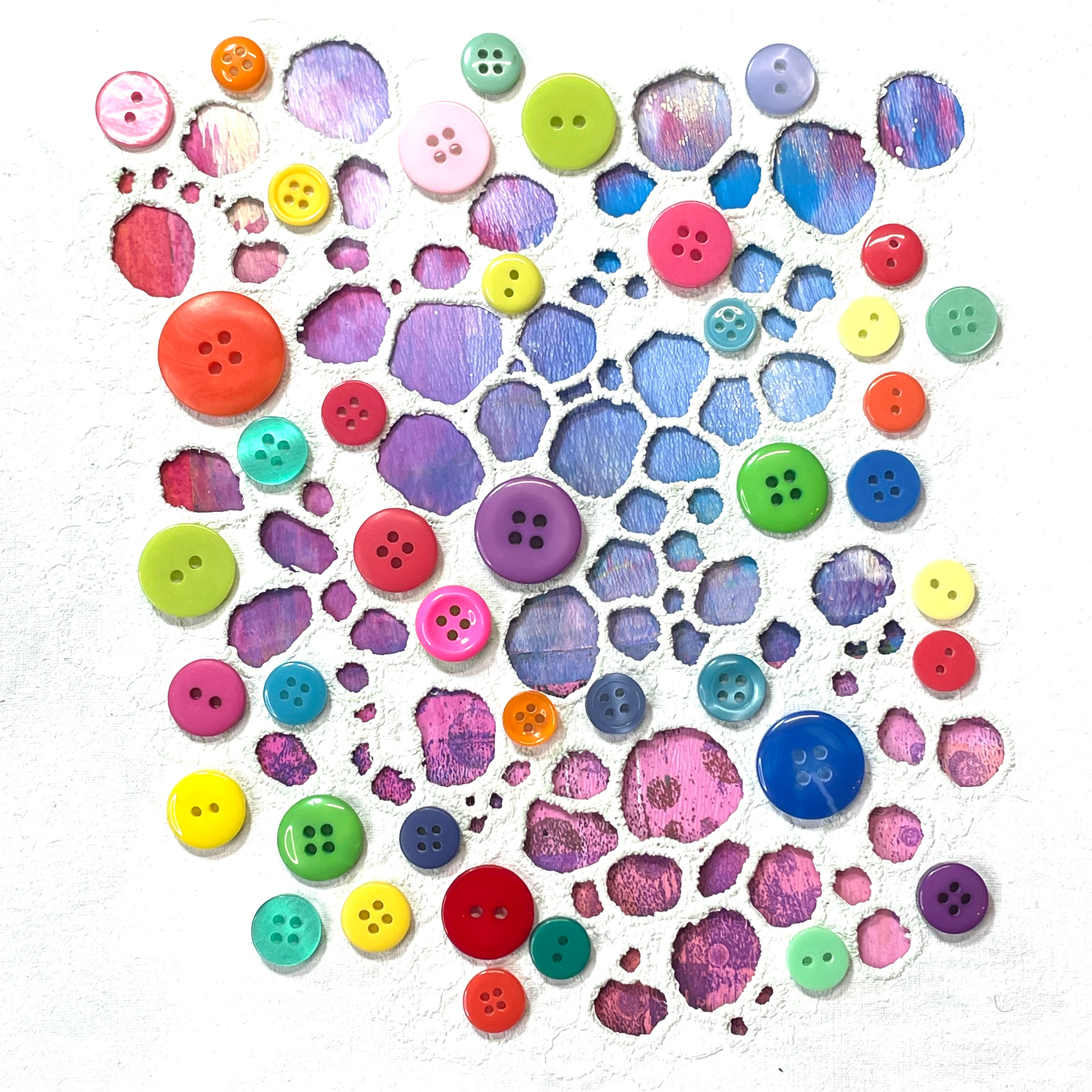 This one’s going to be a challenge. The button piece is fun, playful, I kind of like the way it’s neat and tidy but also a little unpredictable as if carefully arranging all the coloured buttons so they didn’t repeat or look too regular is unpredictable…ok, moving on…